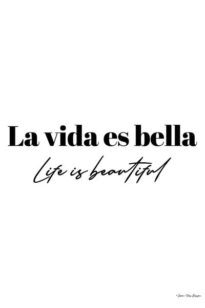 Life Is Beautiful In Spanish Art Print By Seven Trees Design Icanvas - The words life is beautiful spelled out in black spray paint drip over a whitewash brick wall, while a bright fuchsia flower in billie's hair offers a burst of color.