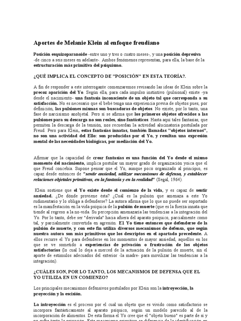 Principales Aportes De Melanie Klein October 26, 2020Entertainment Principales Aportes De Melanie Klein : La introyeccion es el proceso por el cual un.